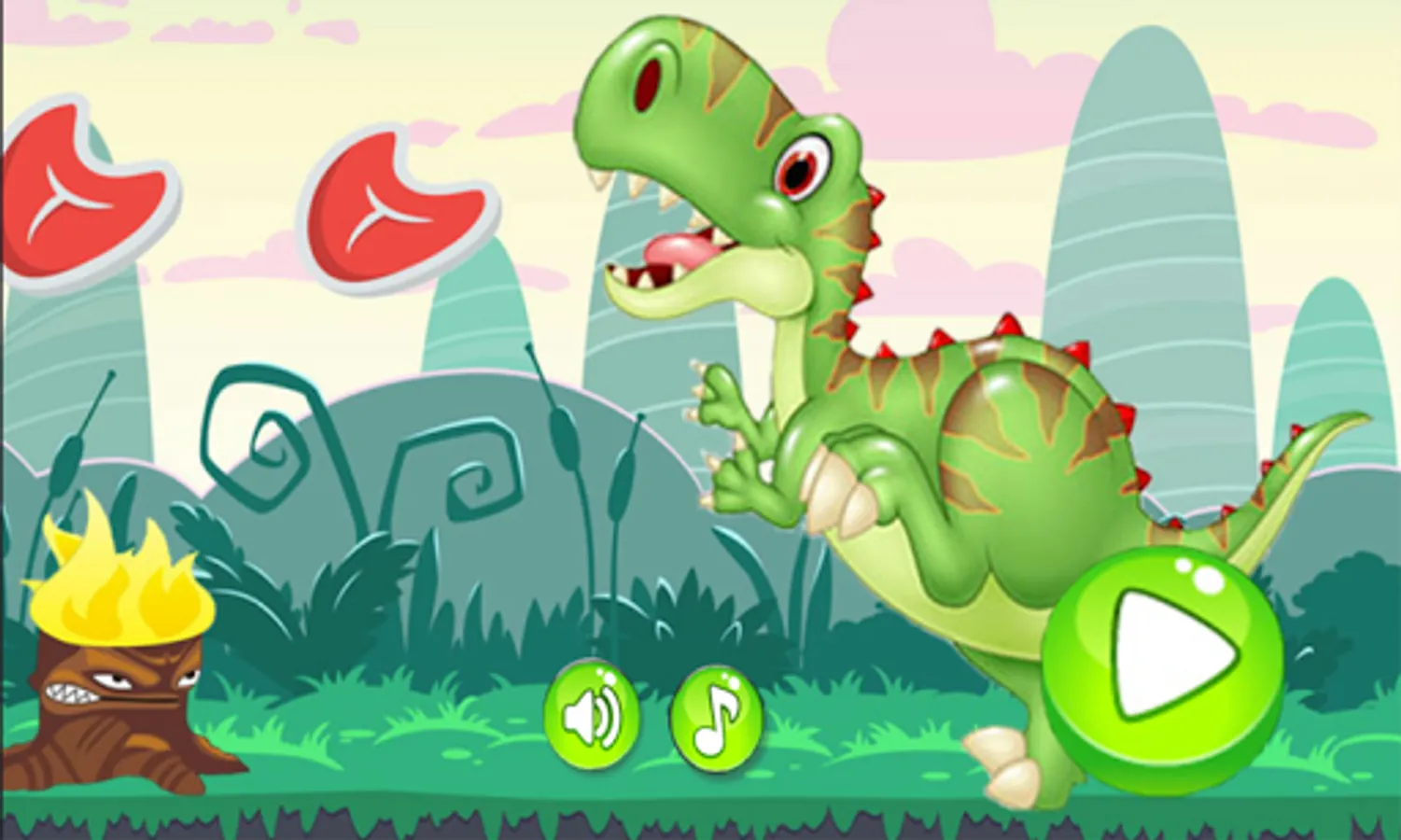 Here come your role in this game, by helping the Jumping Dino to collect the meats and avoiding all the dangers around him.