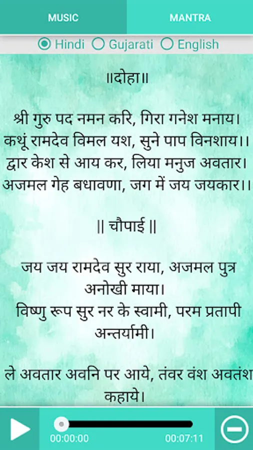• Text in synchronized with audio. So you can read while listen The Ramdev Chalisa.