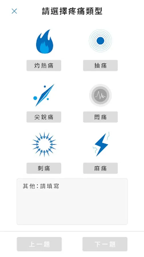 The pain history management app helps you to record your pain status. You can record your pain intensity, pain location, pain type and pain medication used. With the presented pain history curve chart, you can understand the progress of your pain control.