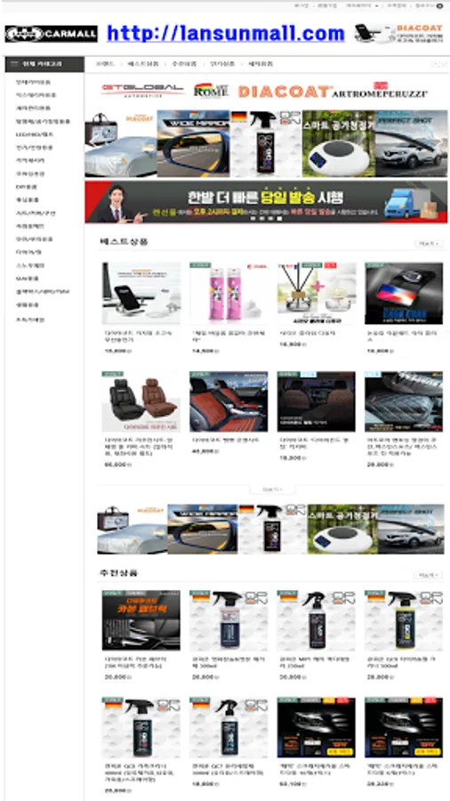Lansun Car Mall operates an online mall specializing in automotive supplies in Siheung Daeya-dong, 1645, Seohaean-ro, Siheung-si, Gyeonggi-do.