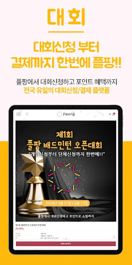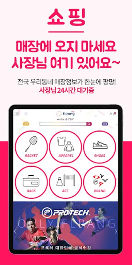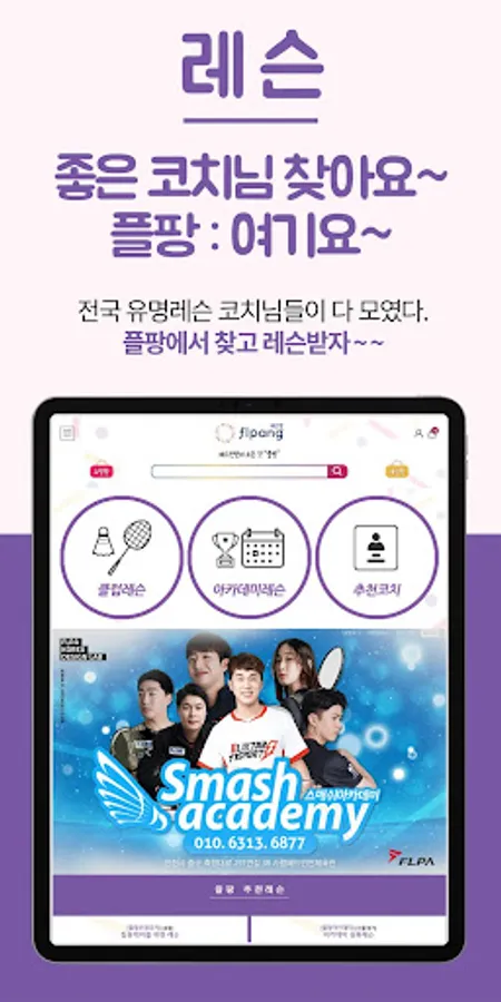 FLPANG is a professional platform for badminton lovers, and is a sports platform that is serviced under three themes of "shopping, competition, and lessons".