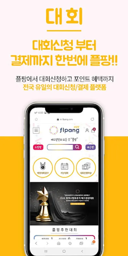 "Game Pang" provides a tournament reception and payment service in connection with the annual national tournament and each regional tournament. We also provide various services necessary for the operation of the competition.