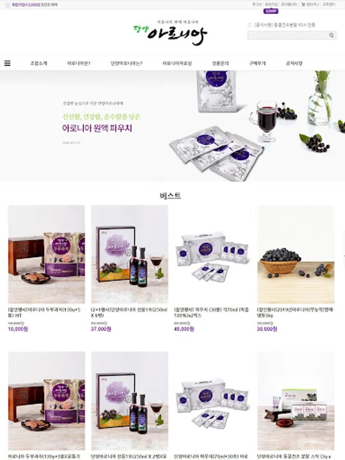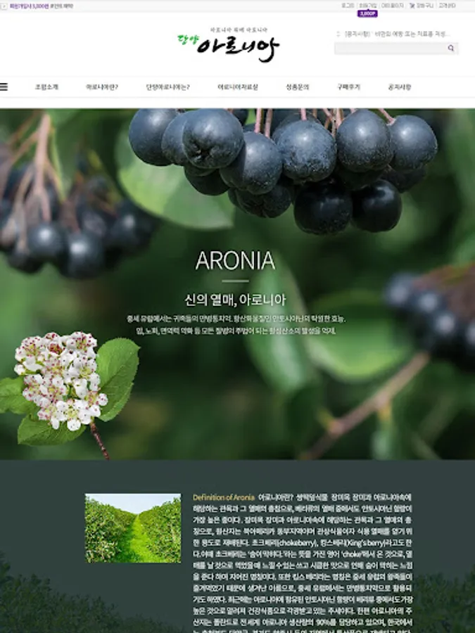 Fresh processed products are also developed and sold based on fresh Aronia fruits grown carefully in Danyang, which boasts a clean natural environment.
