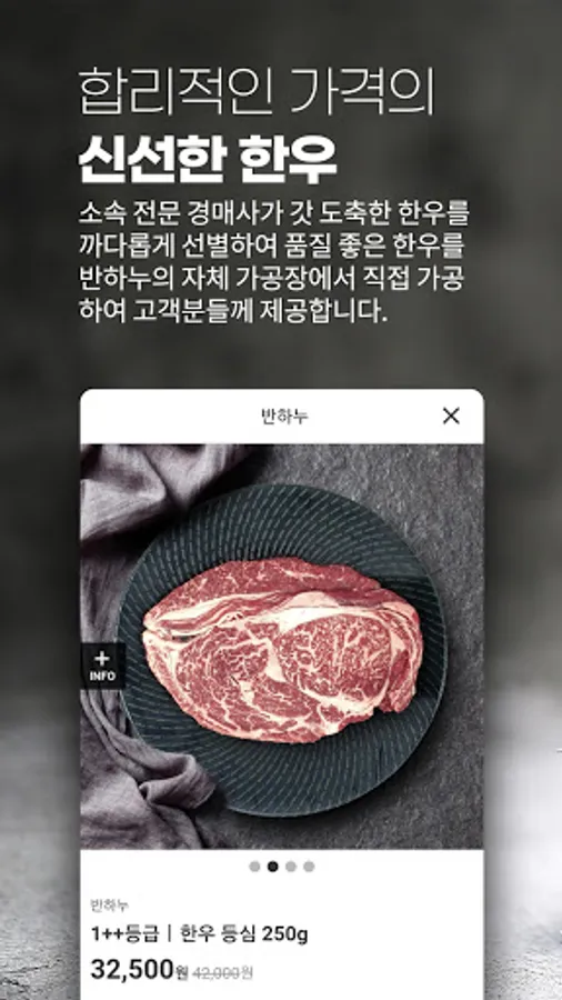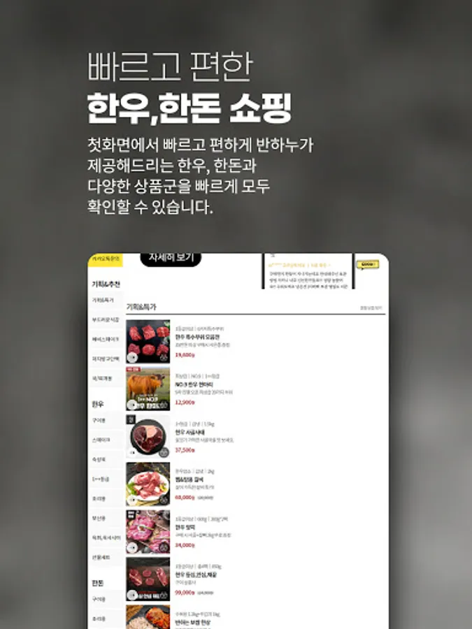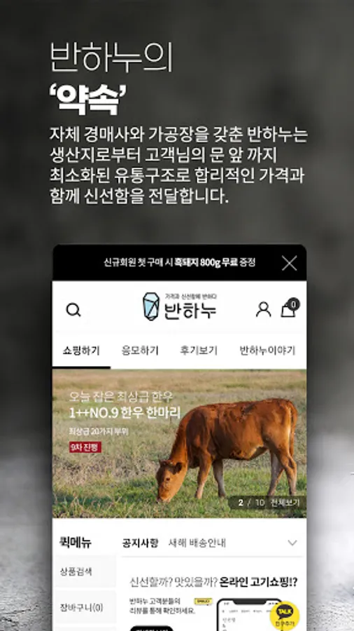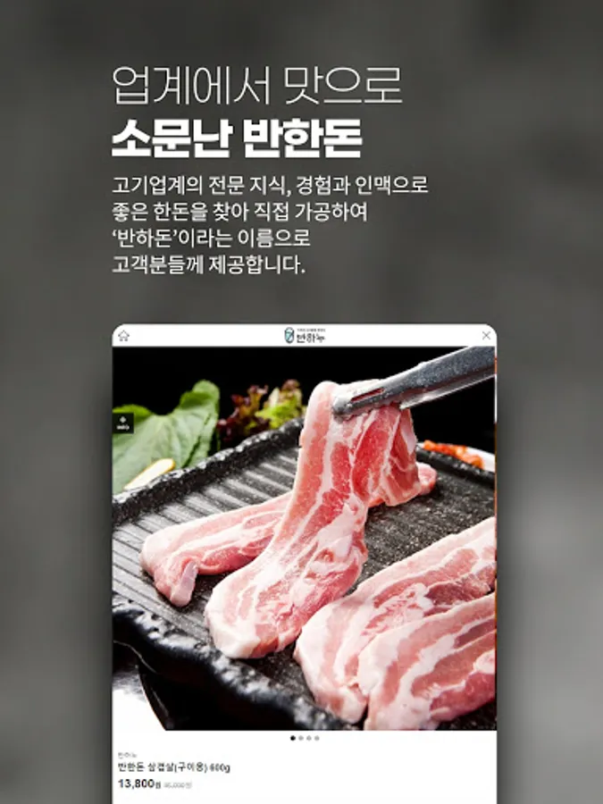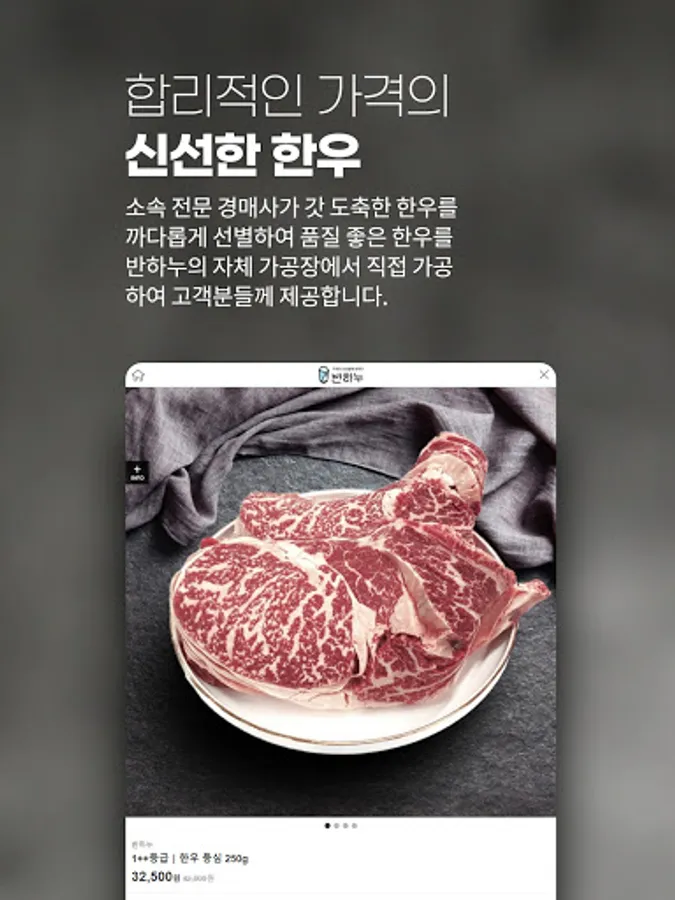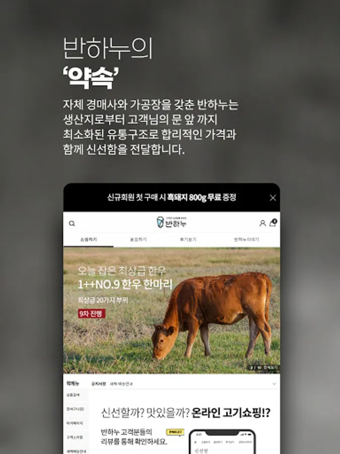 With thorough management and know-how, while growing as a supplier to many companies, from large marts with strict standards to famous boutique butcher shops, we want to provide Korean beef and delicious Korean pork at a reasonable price by processing high-quality meat to consumers with our own unique characteristics. 'Banhanu' We started selling in online/offline meat markets under the brand name.