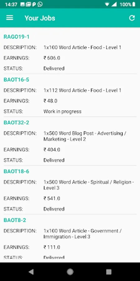 The app displays the available writing jobs across industries and niches. The writers can pick these freelance writing jobs on the app and deliver the content through the https://narrato.io website. The app also gives real time notifications for newly available jobs and change in picked jobs’ statuses like acceptance, revision request & earning accrual.