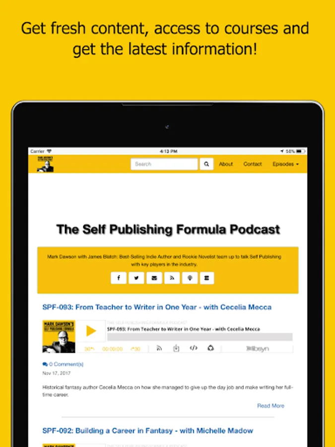 Already a go-to resource for thousands of authors across the globe who have learned how to turn their writing into a profitable career using Mark’s courses, we’ve gathered the best elements of the SPF experience into a single, easy-to-navigate app. Inside it you’ll find: