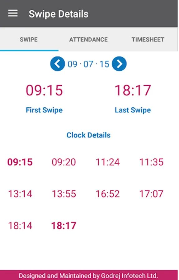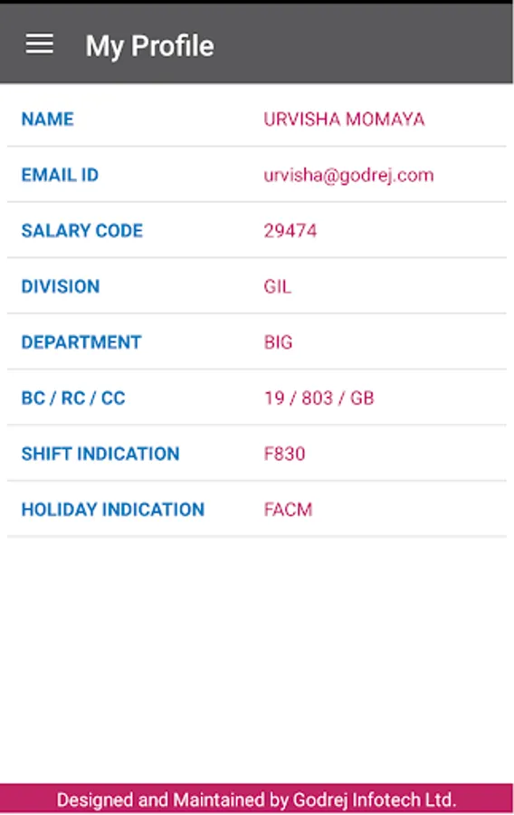 4) View personal information like BC/RC/CC, department, shift indication etc.