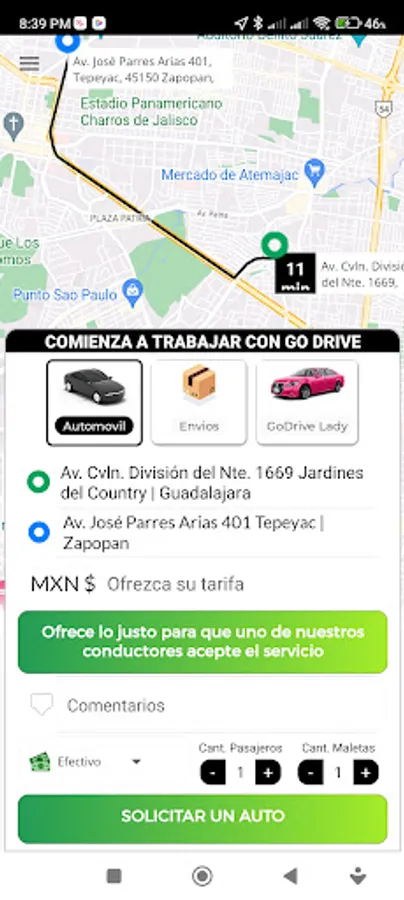 Open the application >> Set your destination >> Check rate >> Press the button to start.