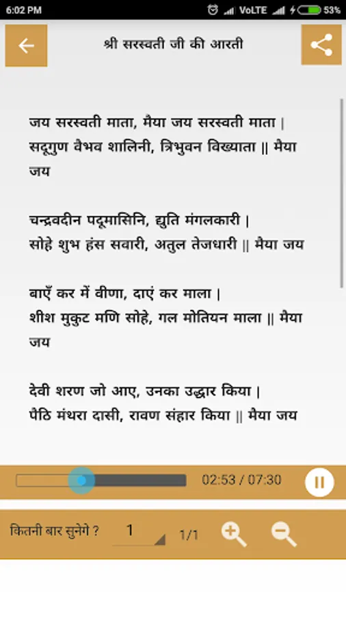 This Application contains Saraswati Aarti in Hindi Language with Audio.
