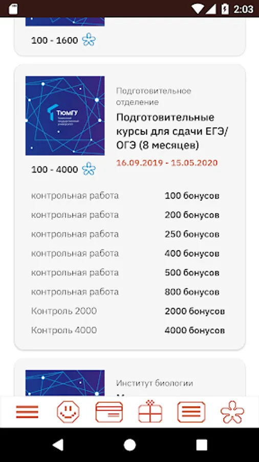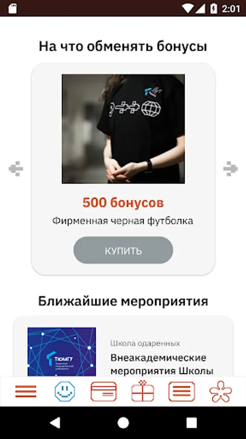 The application allows you to manage your personal account of the participant of the bonus program of the Tyumen State University