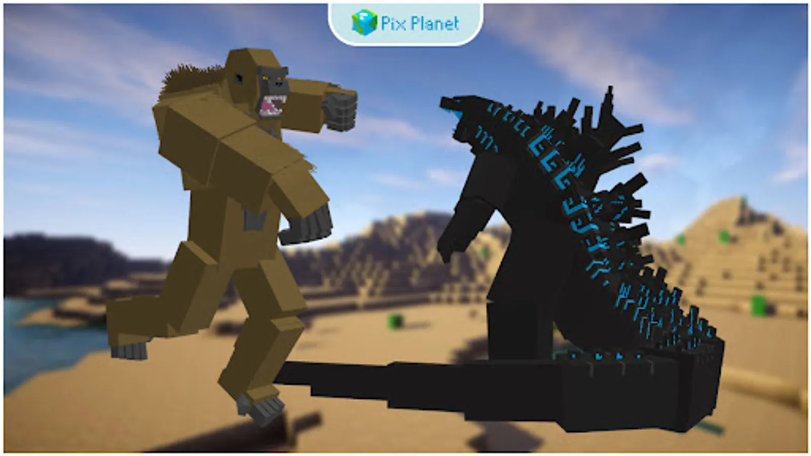 Godzilla mods for Minecraft PE - adds more than 10 new mobs that will confront each other. In this mod you will find different types of Godzillas, Kongs and powerful titans, monsters with which you will have to fight.