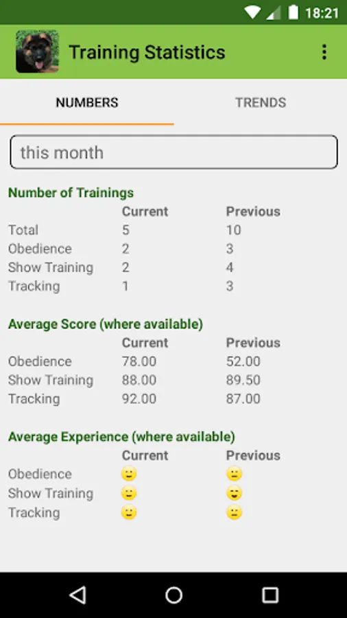 Use the DogScroll statistics views to analyze your trainings based on number of trainings, recorded training time and rating. Use training reports to export your data for additional analysis or for reporting activities to your unit or instructor.