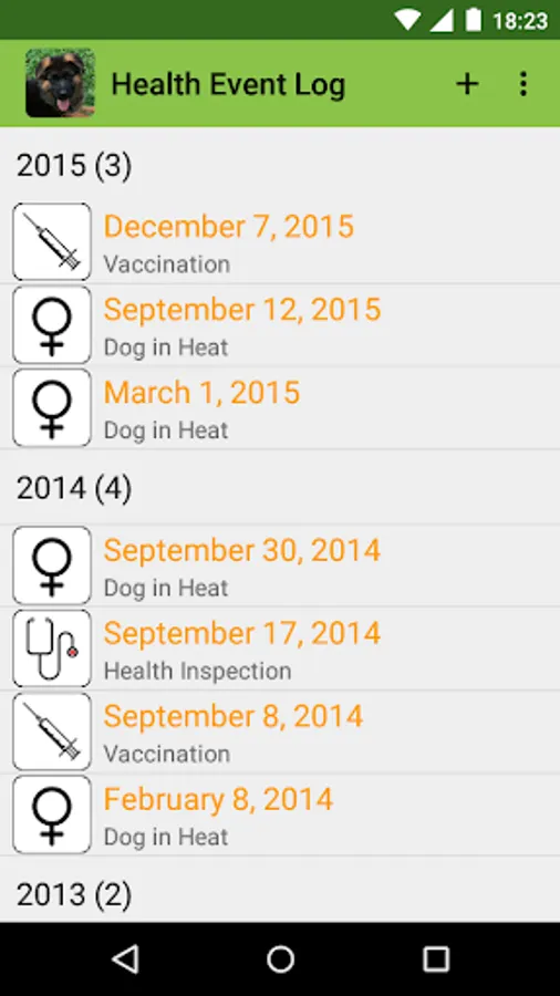 Keep track of events your dog participated in, titles you earned, or championships you won.