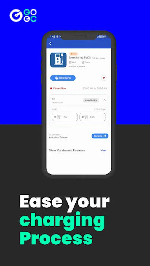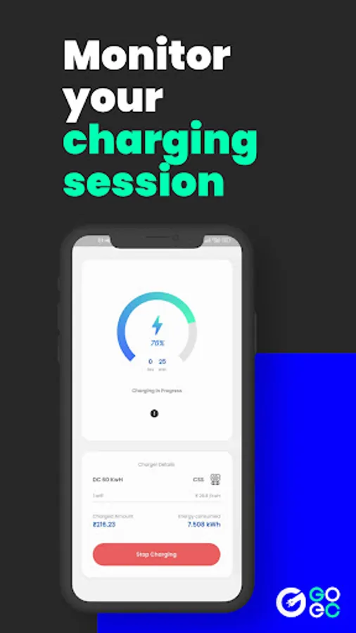 GOEC app allows you to locate and navigate to a charging station, easily start and stop charging, view live charging status, when the charging process is complete and pay for the electricity in easy steps.