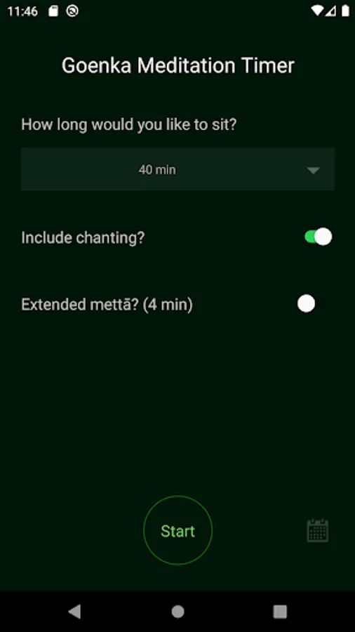 A meditation timer designed for Old Students of S.N. Goenka (dhamma.org).