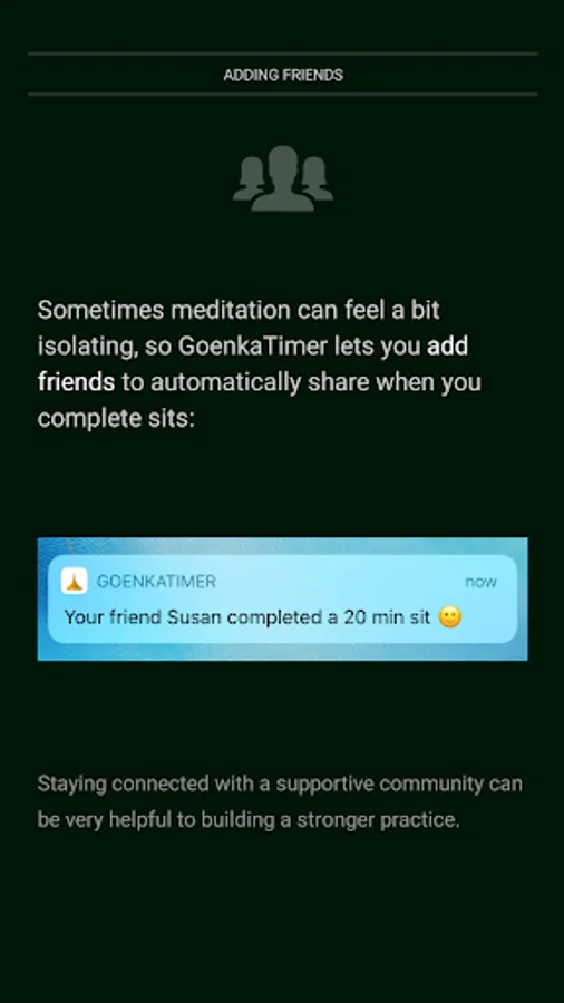Automatically notify fellow meditators whenever one of you completes a sit.