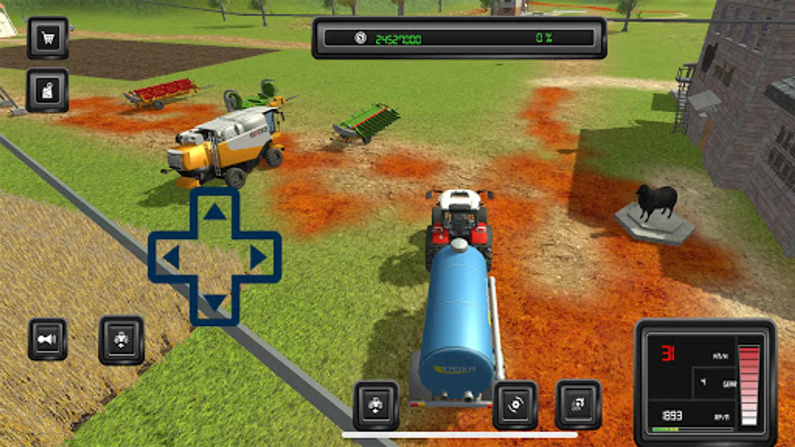 All the farm machines simulate real life tractors, combine harvesters, cultivators, sowing machines, fertilize spreaders, slurry tanks, forwarders and mowers.