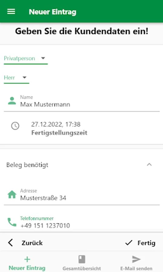 Smart customer data management: Entering customer data made easy. For returning customers, details are automatically filled in.