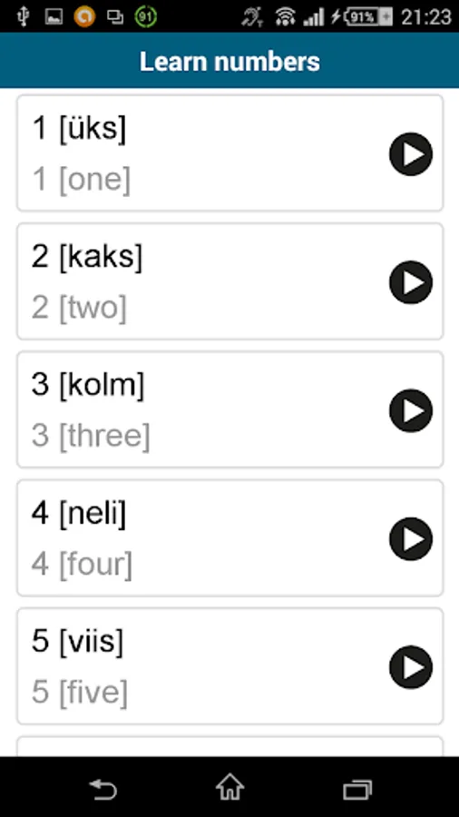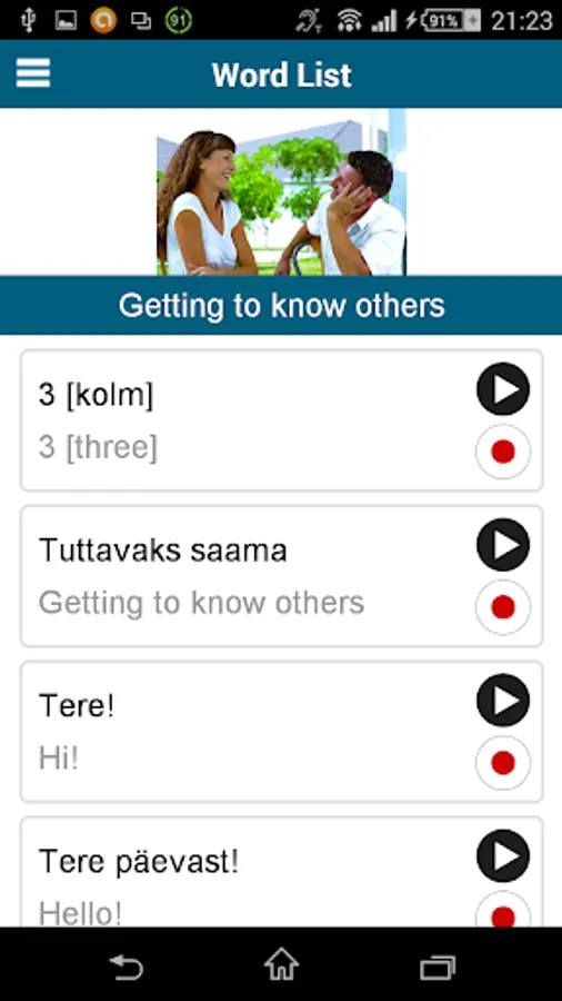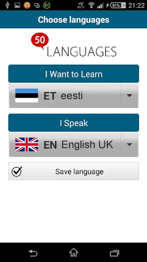 Learn Estonian! - "Estonian 50 languages" (www.50languages.com) contains 100 lessons that provide you with a basic vocabulary. This free app has 30 lessons. With no prior knowledge, you will learn to fluently speak short sentences in real-world situations in no time.