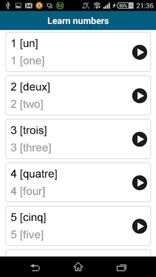 Learn French! - "50 languages French" (www.50languages.com) contains 100 lessons that provide you with a basic vocabulary of the French language. This free app has 30 lessons. With no prior knowledge, you will learn French and fluently speak short French sentences in real-world situations in no time.