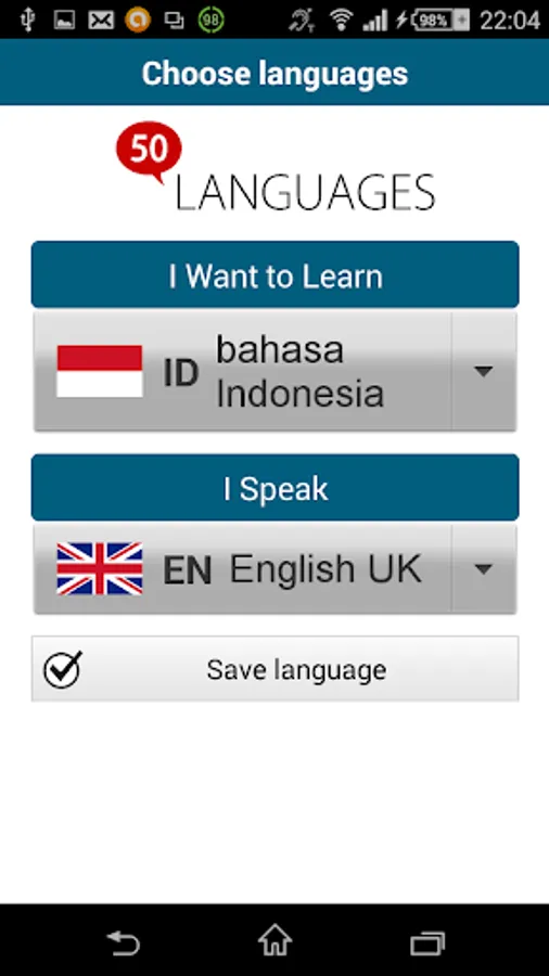 50languages corresponds to the Common European Framework levels A1 and A2 and is therefore suitable for all types of schools and students. The audio files can also be effectively used as a supplement in language schools and language courses. Adults who have learned a language in school can refresh their knowledge using 50languages.