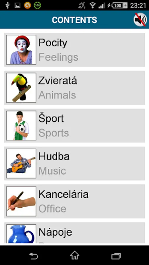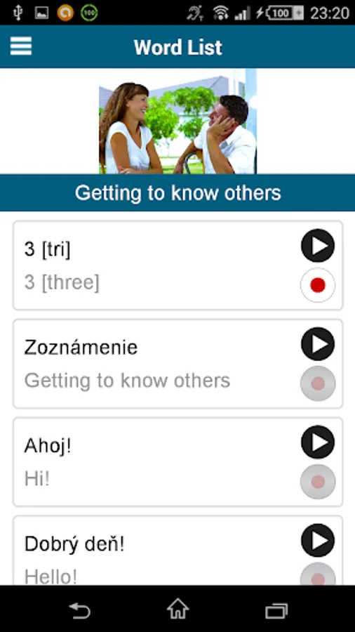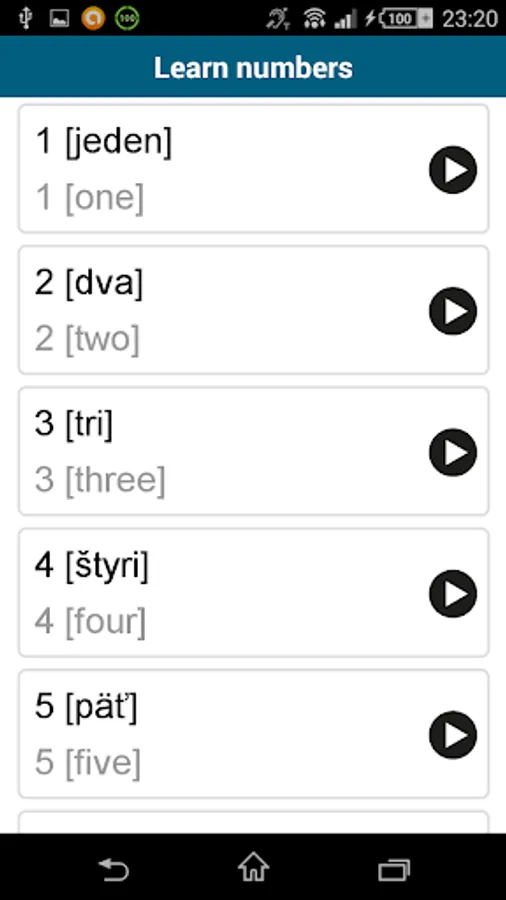Learn Slovak! - "Slovak 50 languages" (www.50languages.com) contains 100 lessons that provide you with a basic vocabulary. This free app has 30 lessons. With no prior knowledge, you will learn to fluently speak short sentences in real-world situations in no time.