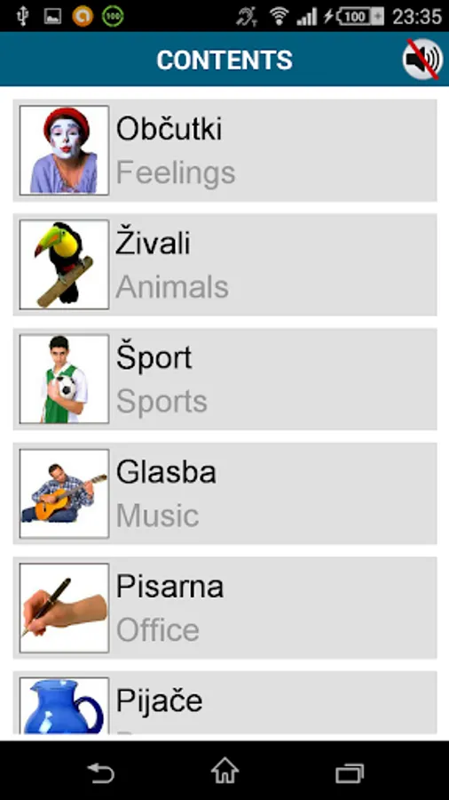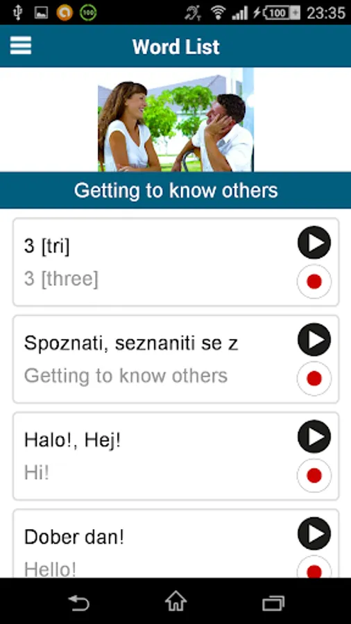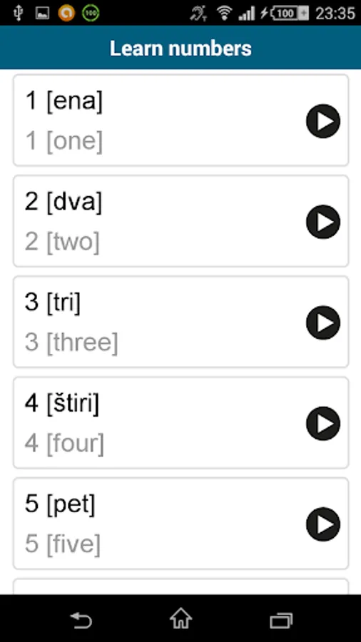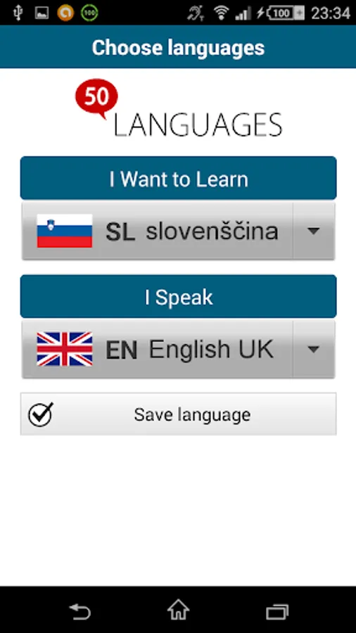 Learn Slovenian (Slovene)! - "Slovenian 50 languages" (www.50languages.com) contains 100 lessons that provide you with a basic vocabulary. This free app has 30 lessons. With no prior knowledge, you will learn to fluently speak short sentences in real-world situations in no time.