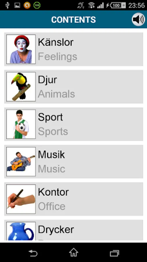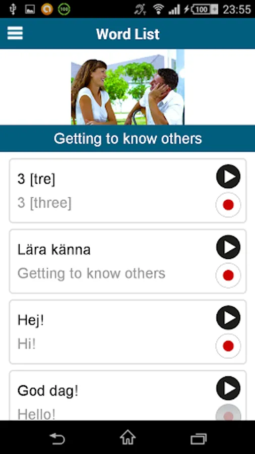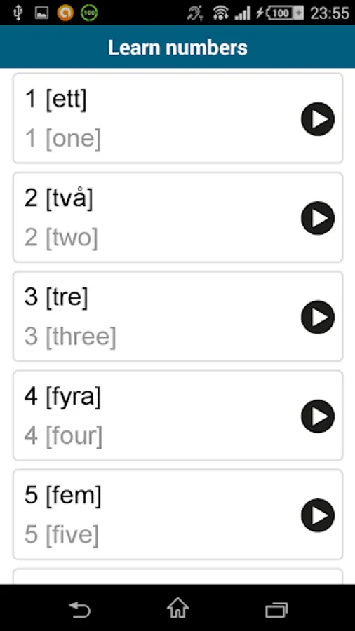 Learn Swedish! - "Swedish 50 languages" (www.50languages.com) contains 100 lessons that provide you with a basic vocabulary. This free app has 30 lessons. With no prior knowledge, you will learn to fluently speak short sentences in real-world situations in no time.