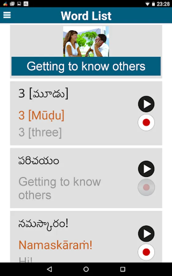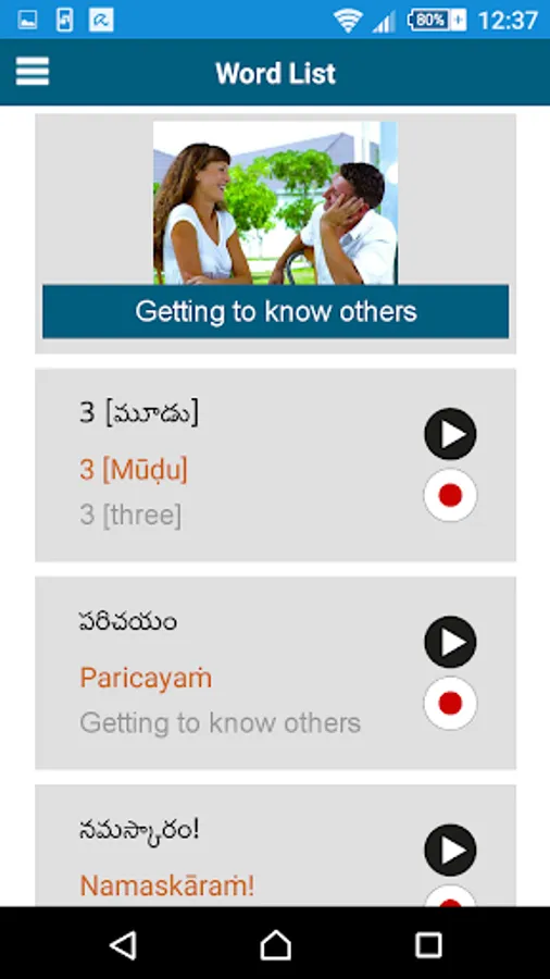 Learn Telugu! - "50 languages Telugu" (www.50languages.com) contains 100 lessons that provide you with a basic vocabulary of the Telugu language. This free app has 30 lessons. With no prior knowledge, you will learn Telugu and fluently speak short Telugu sentences in real-world situations in no time.