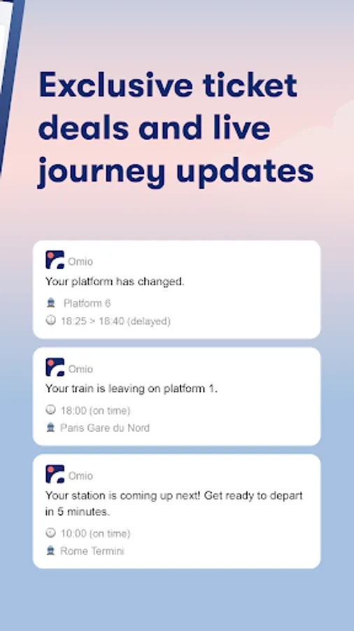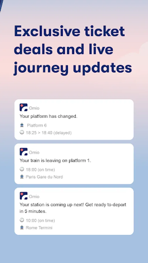 - Live trip updates and platform info: Get live updates on the status of your SNCF and Italo trains as well as trains in Great Britain and National Express coaches.