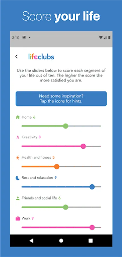 Score your life can help you. It’s like taking a helicopter ride over your life so you can easily see how your life is broken down into 10 aspects (Home, Creativity, Health & fitness, Rest & relaxation, Friends & social life, Work, Family, Money, Spirituality and Love & romance). From there it takes a moment to score each aspect and learn which aspects are working and which could do with a helping hand.
