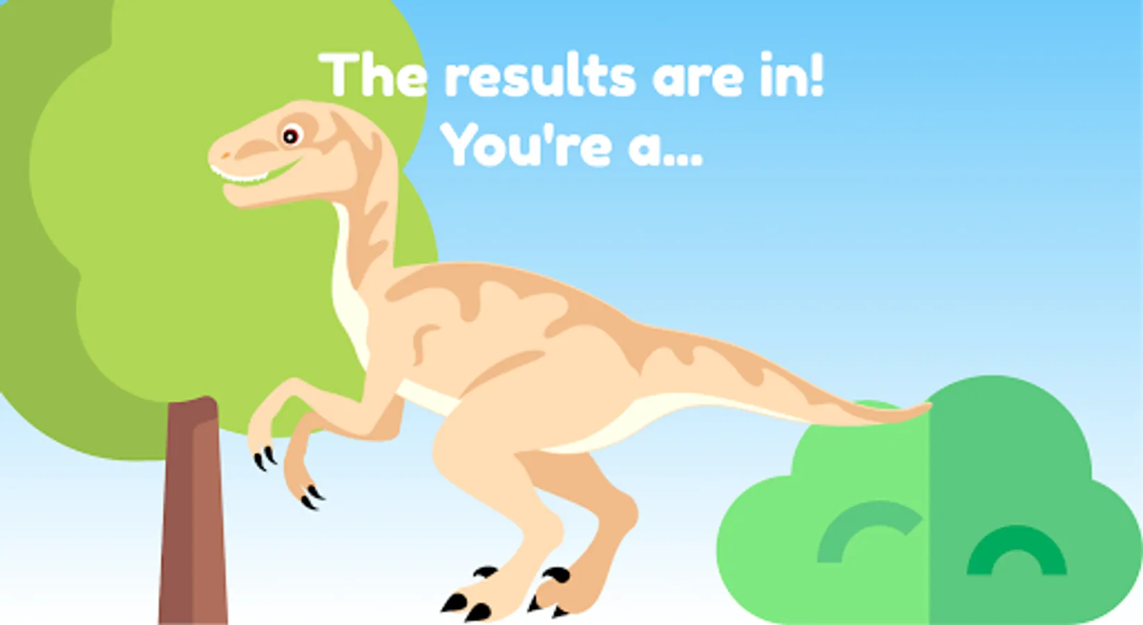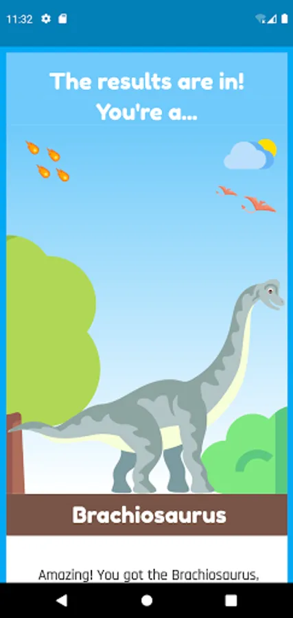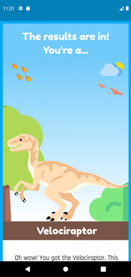 This app was made possible by a 10 year-old boy from London called Kijhanie. Kijahnie says that he hopes you love what dinosaur you are!