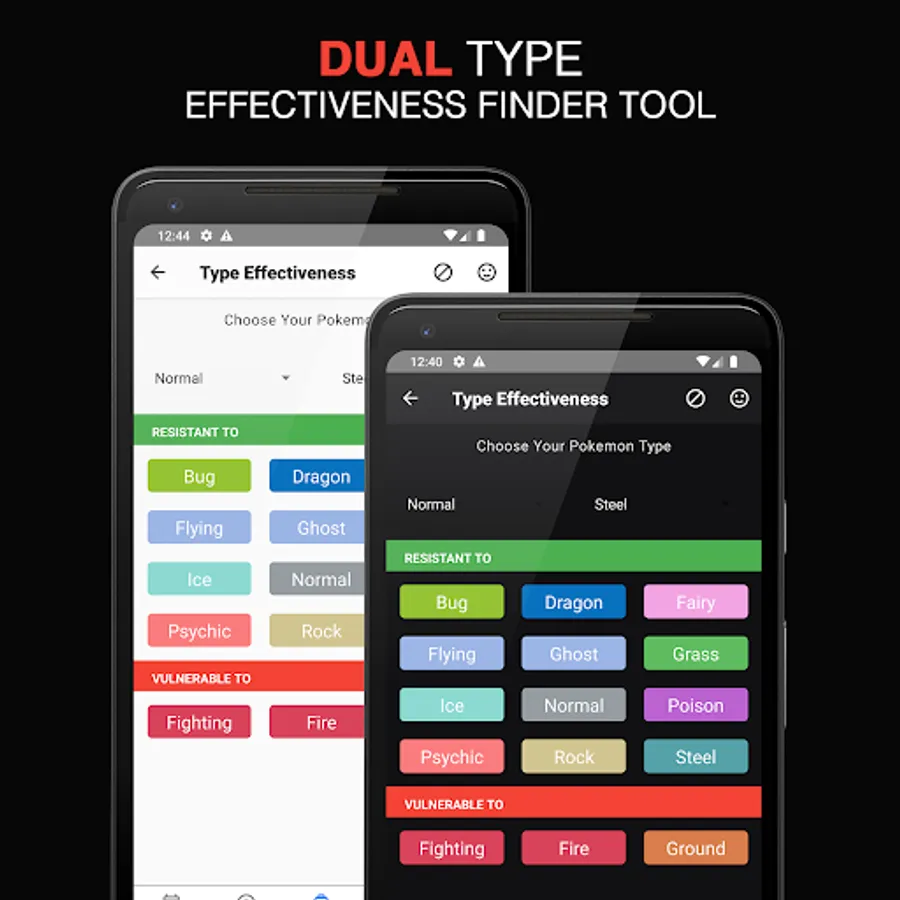 Get the type effect information such as Super Effective, Weak to, not effective against!