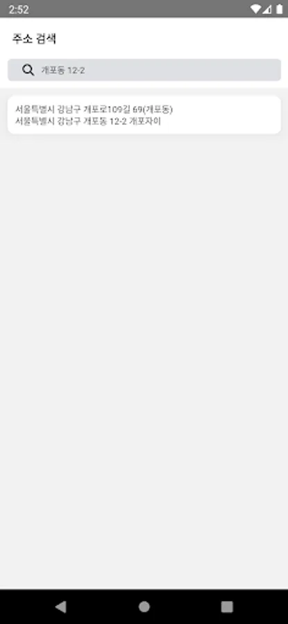 For address search, it is possible to search using lot address (old address) and road name address (new address).