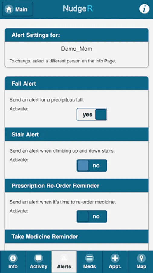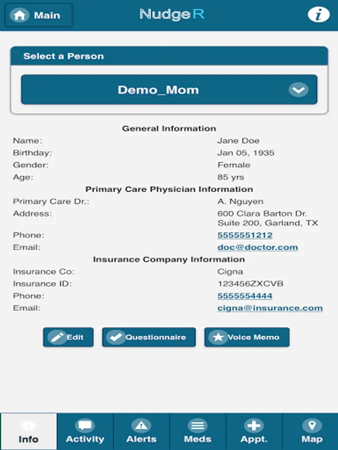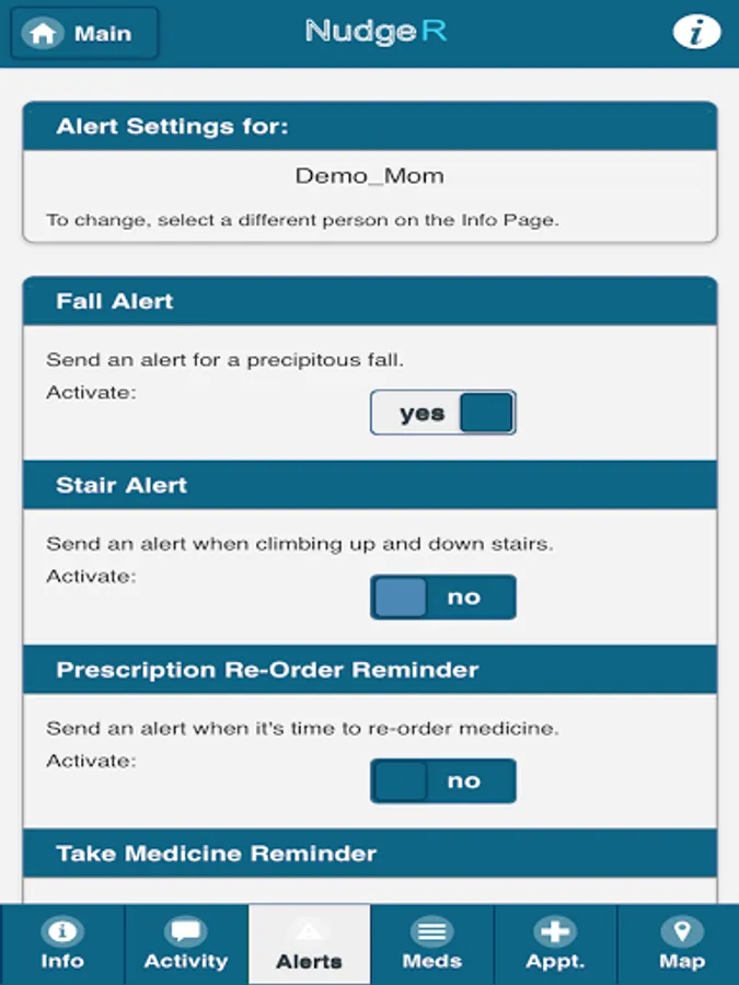 Special configurations are loaded for each device type. For the medical alert device, you can select which alerts to receive and who receives the alerts. In addition, there is a section that can hold pertinent medical information such as primary care doctor and medical prescriptions.