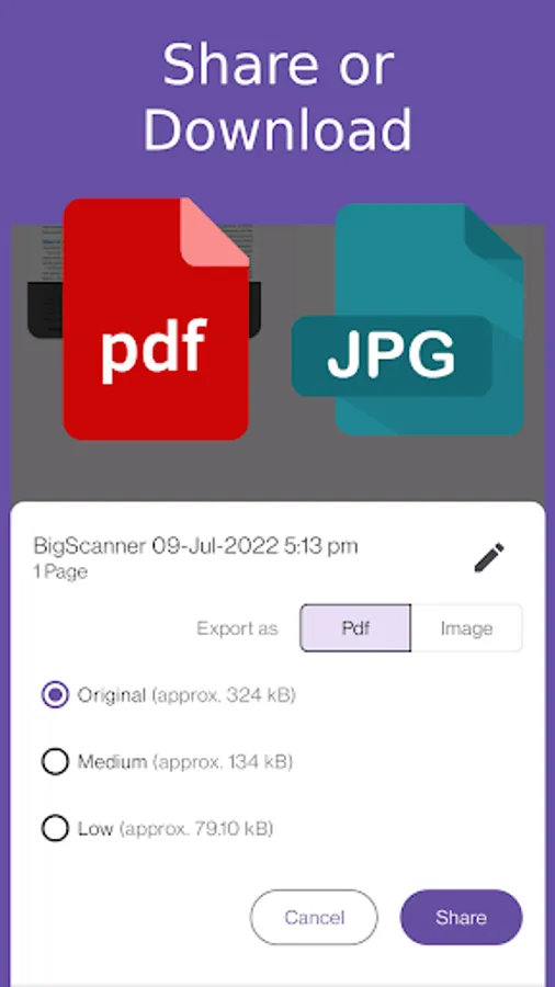 You can also easily convert high quality scans to Images also and share or download images inside your phone.
