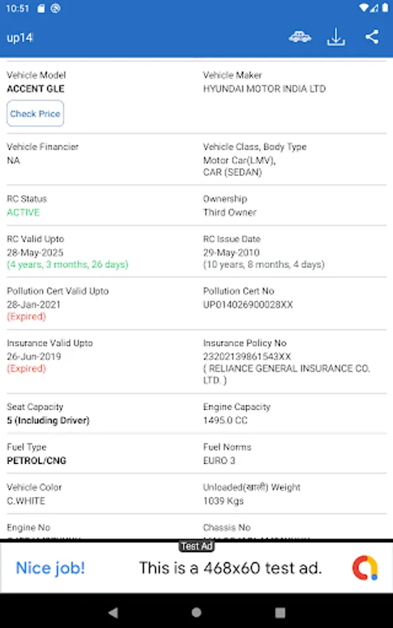 Vehicle Information app give you vehicle details, car info, vehicle info for free. Check details of any (new / second hand )vehicle before buying it.