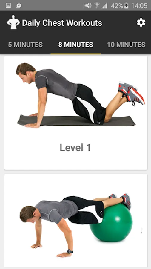 Fitway Daily Chest Workout Trainer contains three different chest workouts: 5, 8 and 10 minutes.