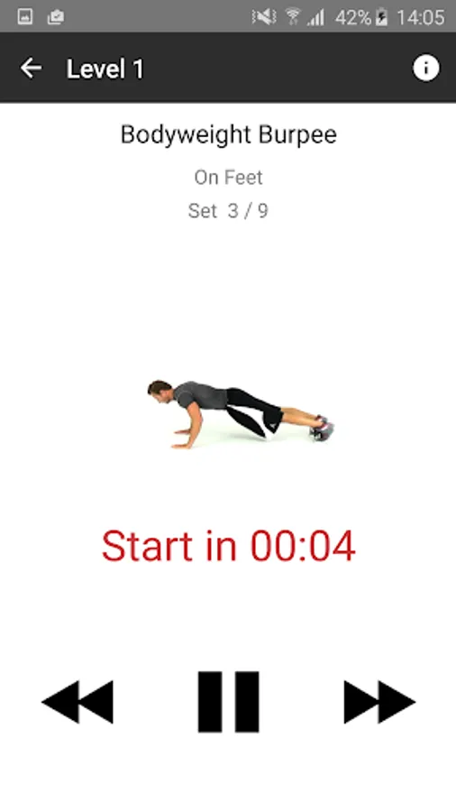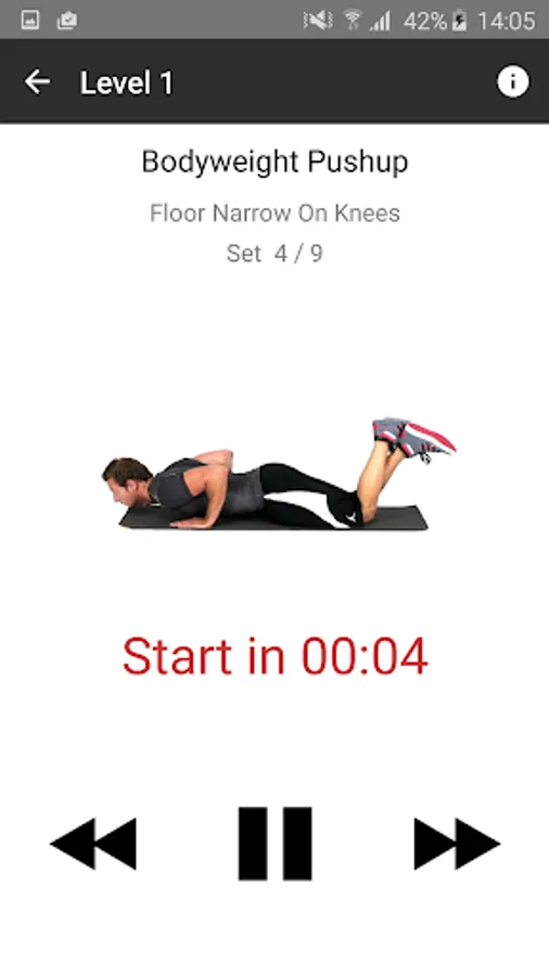 The app is made for men, three different difficulties are available: beginner (level 1), medium (level 2) and advanced (level 3).