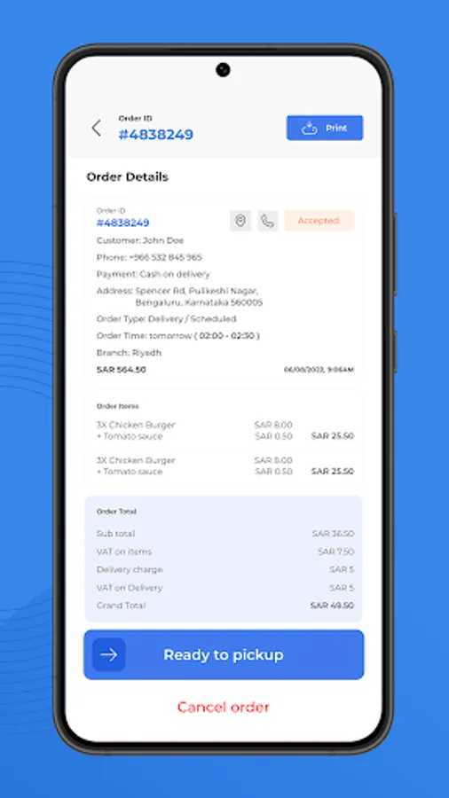 A POS device installed at every branch allows the restaurateur to receive order notifications. The order is then processed and assigned to the closest delivery agent available. The customer is notified about the order, all through Twerlo Fooder on WhatsApp.