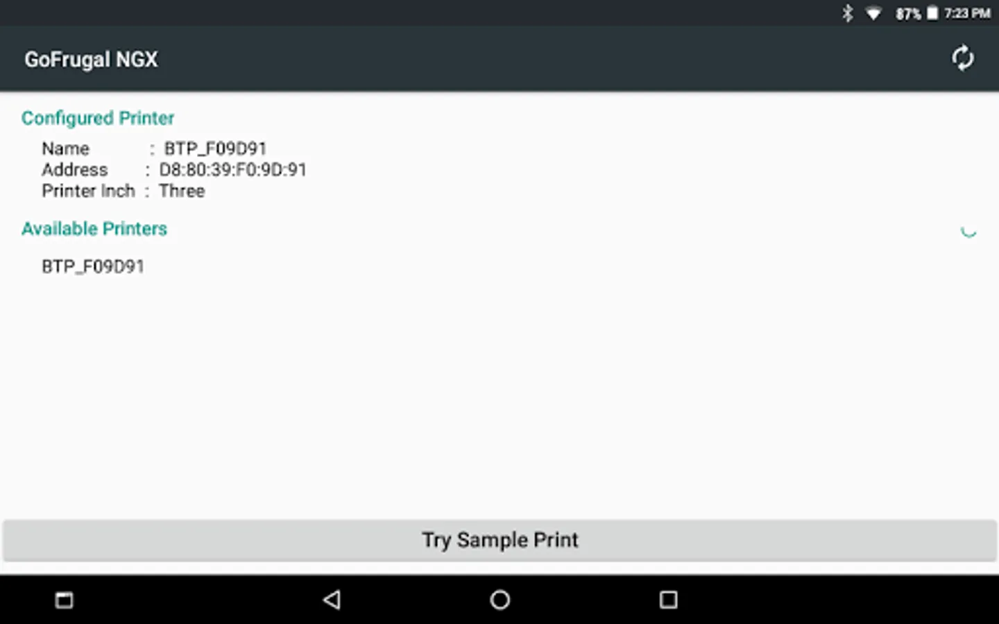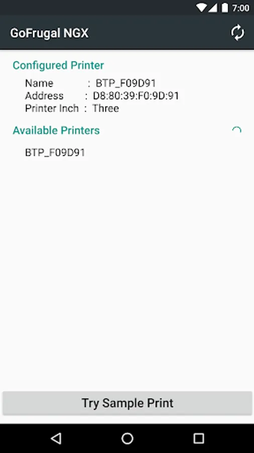 Displays the list of all NGX bluetooth and Inbuilt printers available around the network area, users can select the required device for printing.