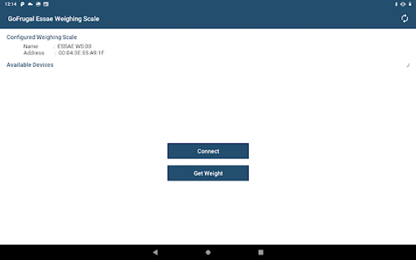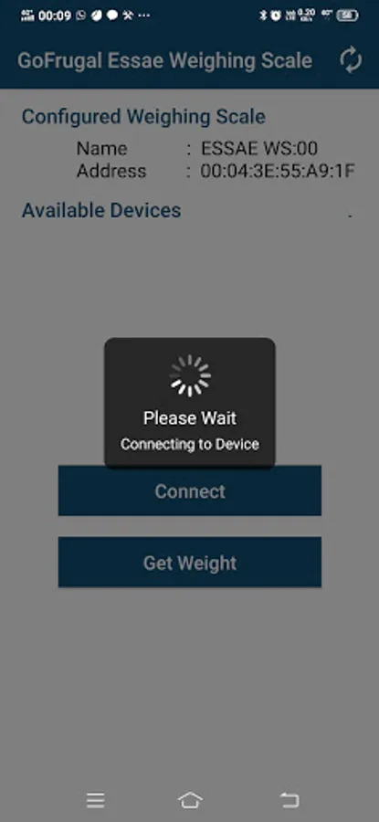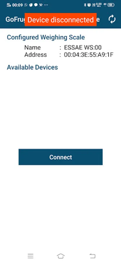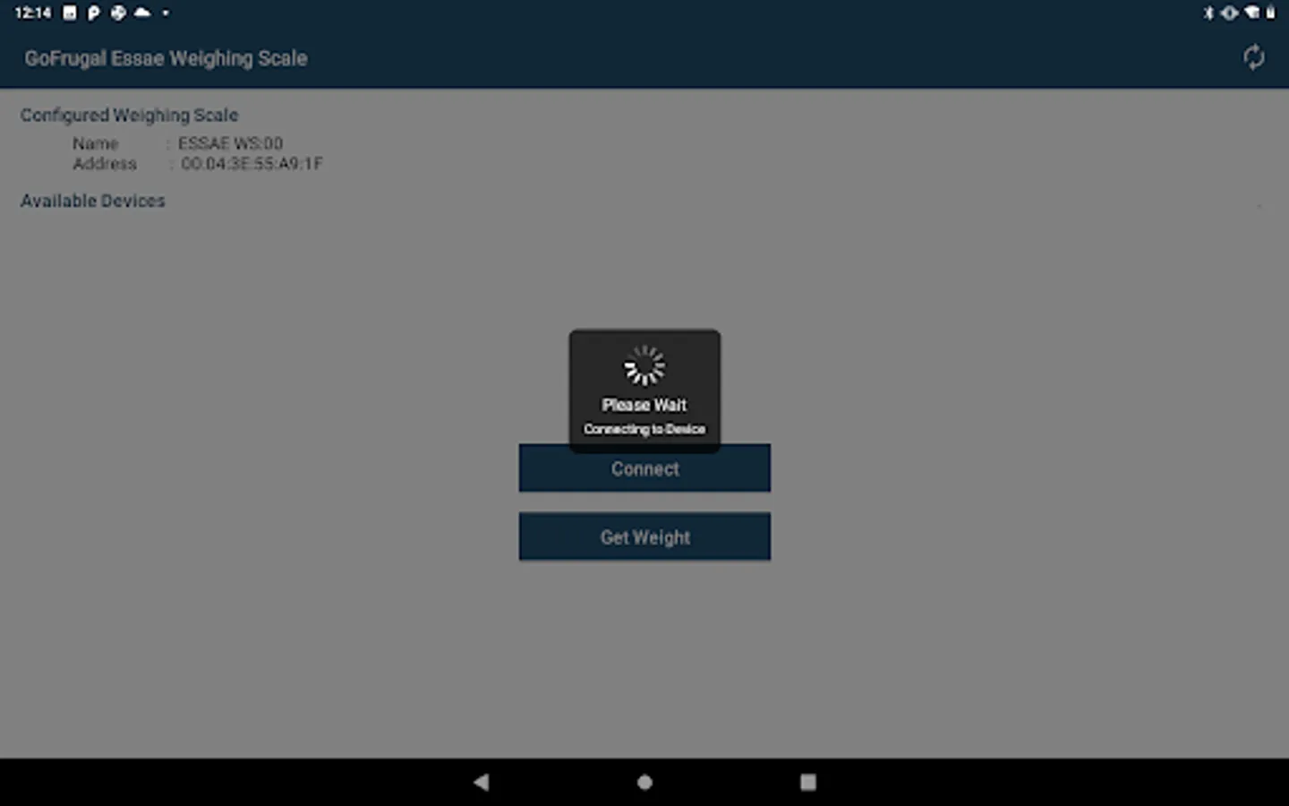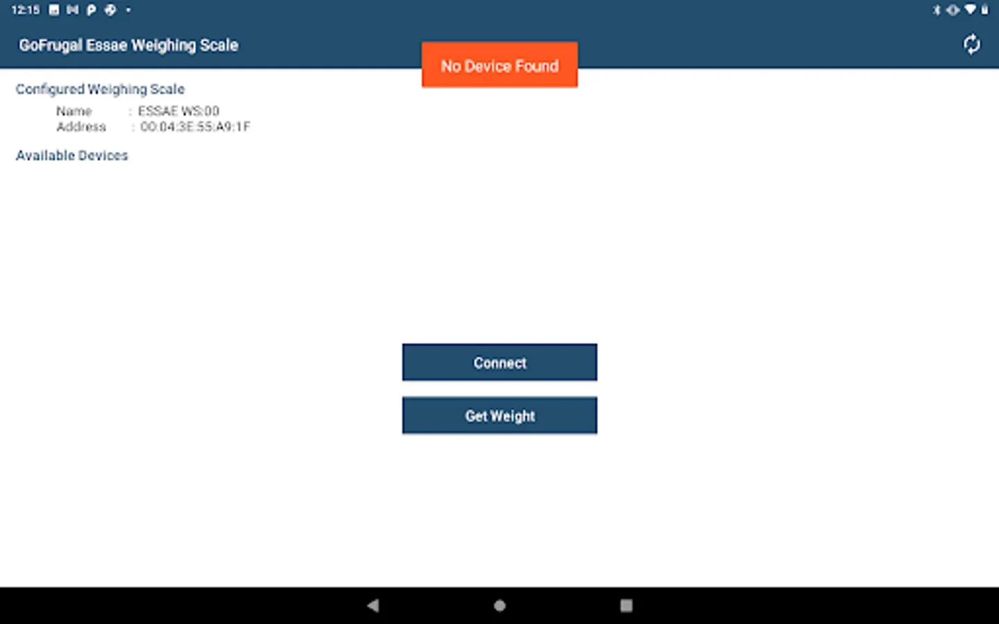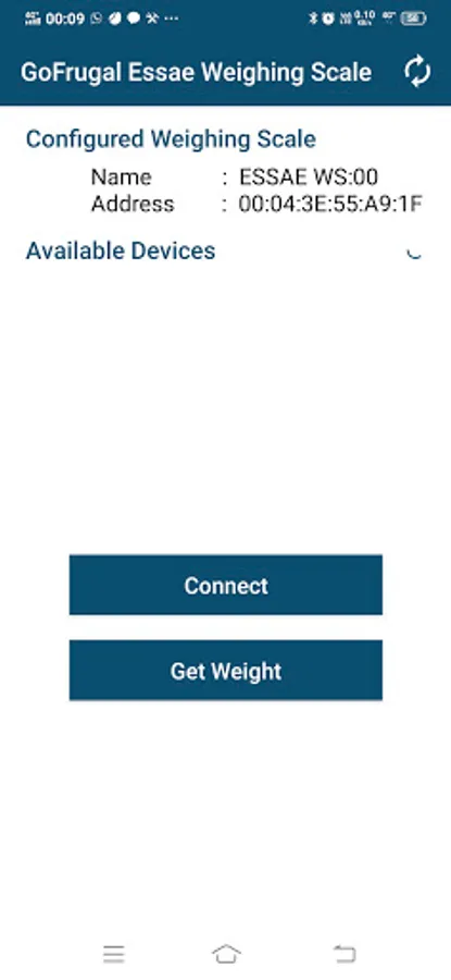 Displays the list of all bluetooth weighing scales available and user can select the scale for weighing and billing.