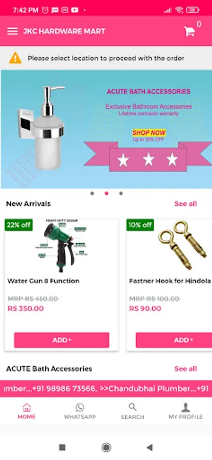 We Dealing in Plumbing, Sanitary, Bath Fittings, Bath Accessories, Tiles, Building Materials etc Branded and quality products at reasonable rates, discounts and Attractive deals with easy return policy without any hassle.