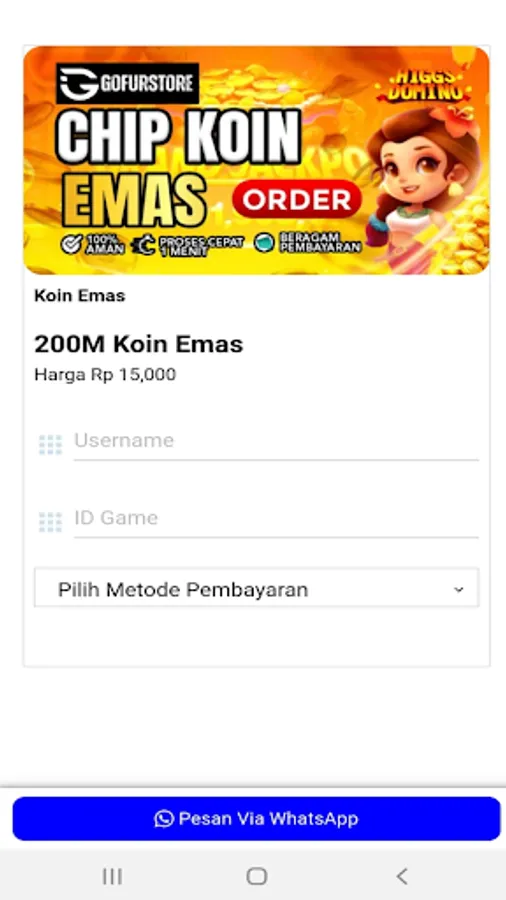 The process is just to select the desired HDI chip, then do a top up and then the Gofur Store will process it quickly