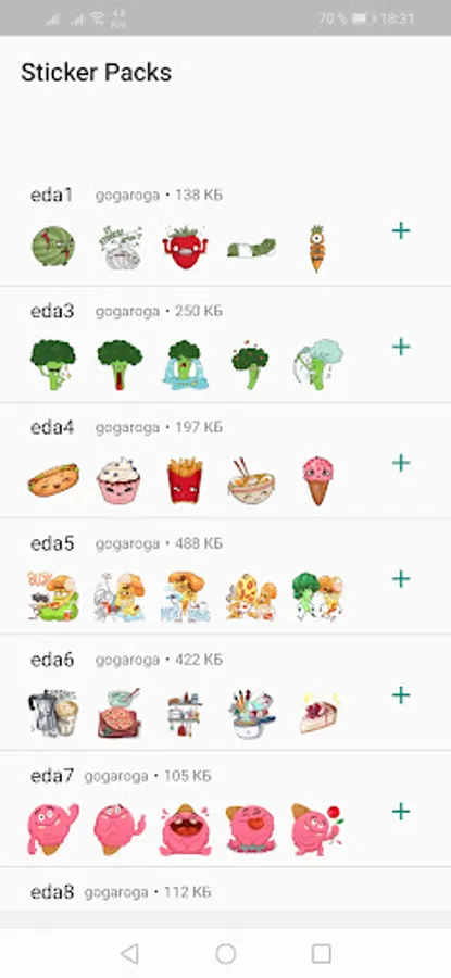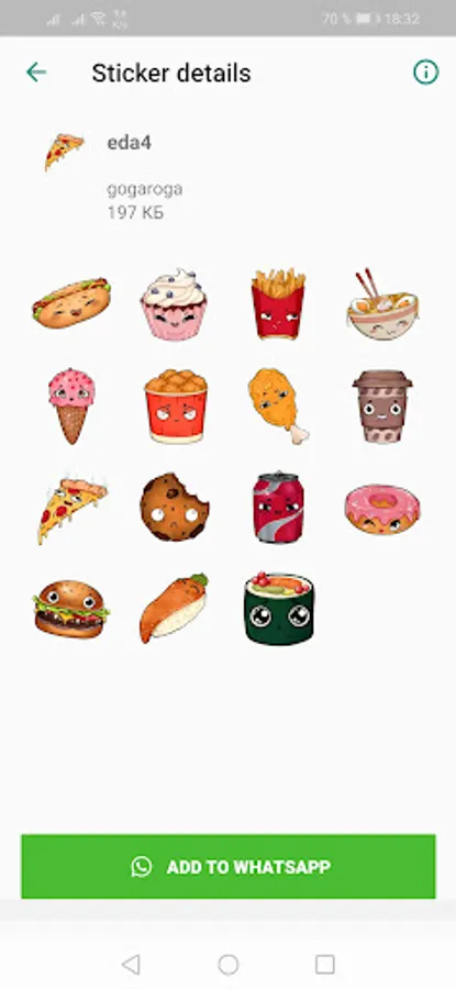 WASticker food challenge stickers for whatsapp. There are burgers and pizza and broccoli and many other food stickers.