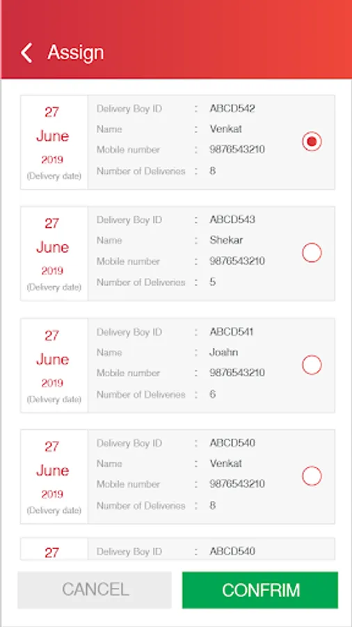 * Assign order to a particular delivery boy