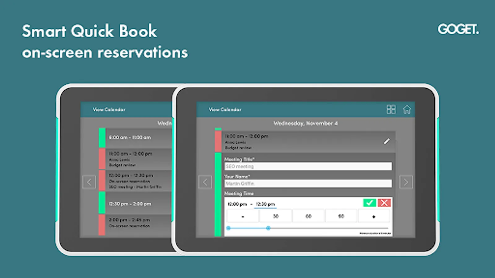 Building on the world’s preferred room scheduling system - Room Display - this all-new generation Room Display 6 takes professional meeting room bookings to an unprecedented level, when it comes to design and features, while still enacting GOGET’s core value of “keeping it simple” for both users and admins.