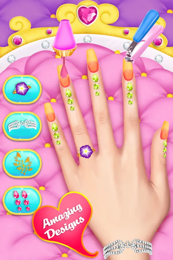 Be the professional makeup & nailwork artist and manicure specialist for fashion model movie actress. You can spa, shower, buff, polish , decorate and dressUp your nails with your dream expectations. Choose your skin tones and start shinning the hands with manicure tools. Share your designs with your friends and family. While performing in drama or film , movie actress girls shall shinning and glowing with fashionable designs. There are lot of polish colors ideas, decoration patterns, elegant tattoos, gorgeous rings and bracelets.It is the top model actress fashion dress up and manicure games. Get ready for celebrity fashion for famous superstar movie actress of cinemas and films.