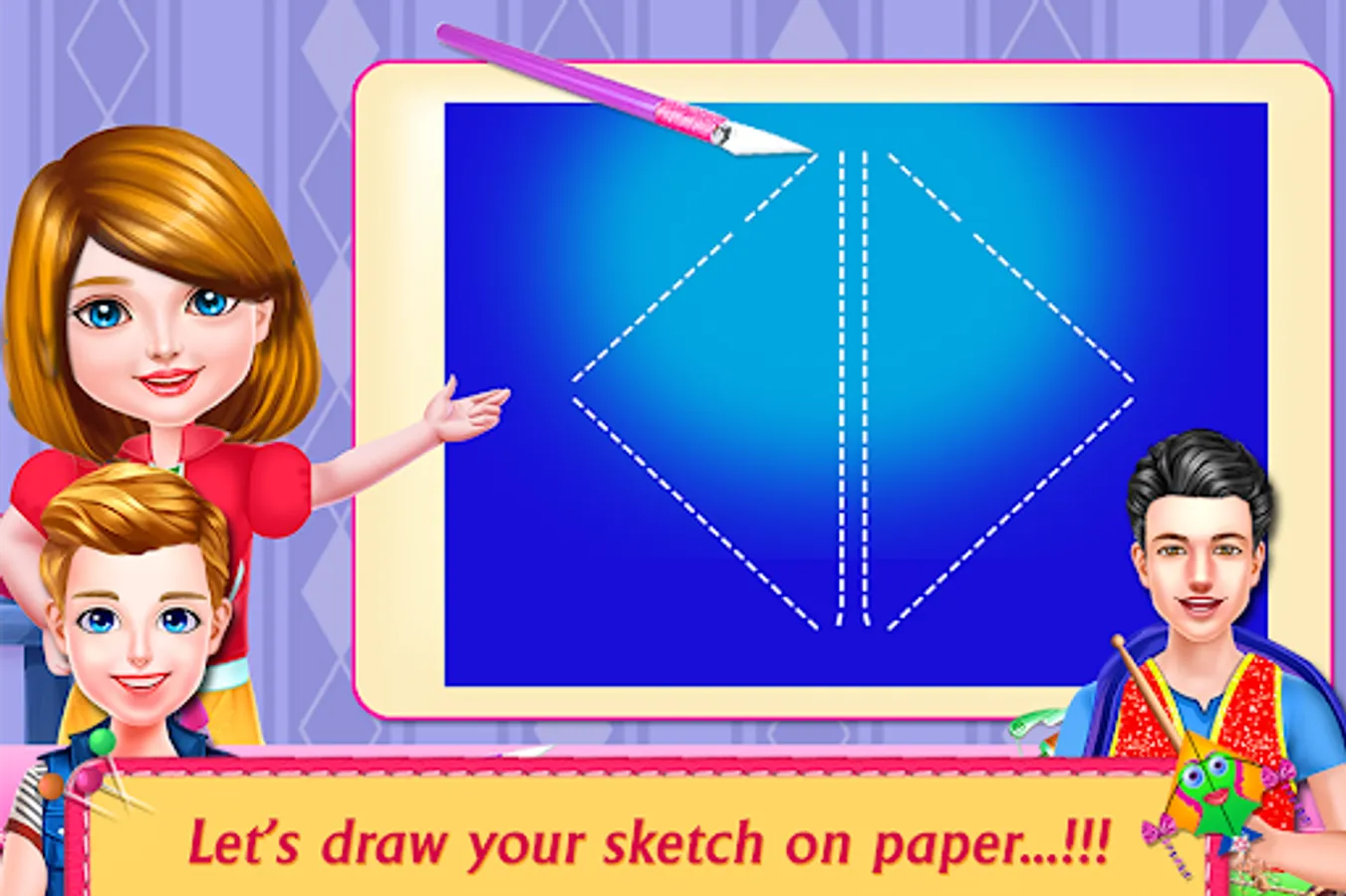Kids your favorite festival is just around the corner so let’s get creative and design some lovely kites on this lovely windy day. Come and build your own sled kite, diamond kite, bard door kite, Rokkaku Kite, Sode Kite, Delta Kite, Roller Kite tail, Bumblebee kite and Dopero Kite. Imagine the fun and joy we are going to have at the house roof while doing dance on constant beating drum and cheering. Kites Designs Factory Flying Festival- Fun Artist will take you into a friends adventure where you can be a fashioned artist and take part in festival dressUp activities or learn Kite fighting skills after making your own Dual-line kites using various materials like fiber paper, wooden dowels, masking tape, scissors, kite's string, thread, powdered glass, standoffs, kite reel and marker paint etc.