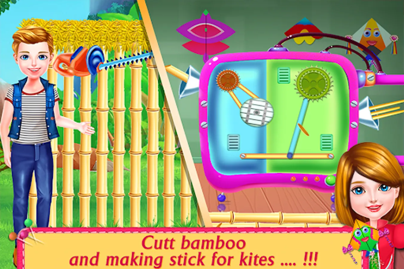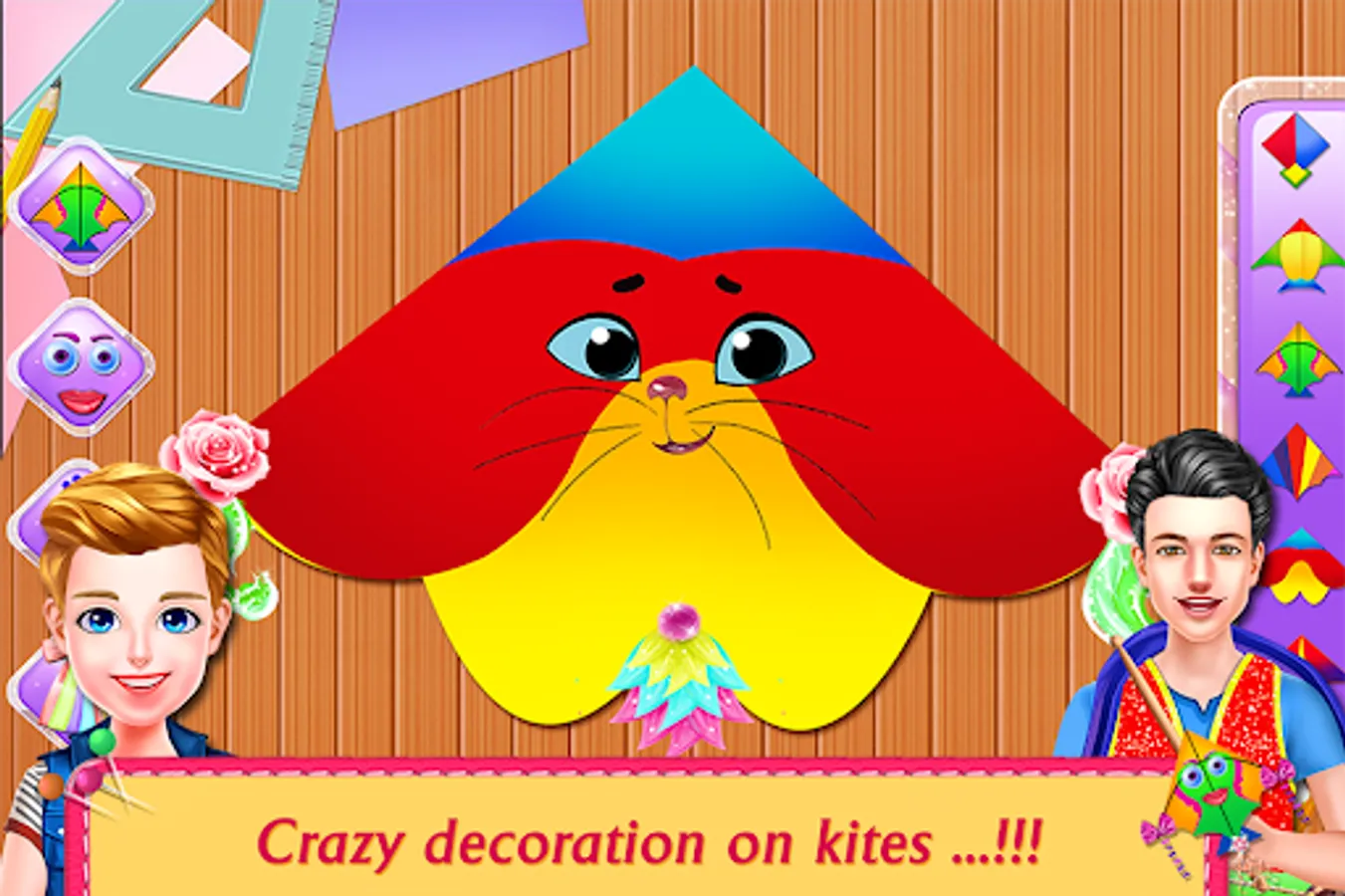 Kites Designs Factory Flying Festival- Fun Artist is a factory simulation game which gives you chance to explore with infinite Chinese crazy kites shapes and designs. Kids love Bumblebee kite which will fly high in the colorful sky along with the wind like a butterfly. Beware of the Manja though as it is made of powdered glass and can cause injury. Imagine the smiles on everyone’s face when they will see the colorful sky. But first you would have to put some effort in making these lovely kites. Its framing is an important procedure in which the wing dimensions are kept symmetrical so that the kite should fly high with the ribbon balance. Bamboo dowels or wooden dowels are used for the framing procedure. You can use all sorts of sticks and frills for your kite decoration. The crazy kite flier should use a needle to do Hole punch into the kite so that a string from kite reel or manja can be tied to it as standoffs. Then if there is no thunderstorm you can make your kite fly high in the colorful sky. Its preferable if it’s a windy day then the kites will twist and twine in the air. It may inflate higher as well. You can steer the kite in any direction you want. Imagine the sky launch of attractive kites made by the fashioned artist. But look out for the stunt kite rods some enemies use to tear up or steal your kites. Kites Designs Factory Flying Festival- Fun Artist is such an amazing factory simulation for a kite flier in such a windy day.